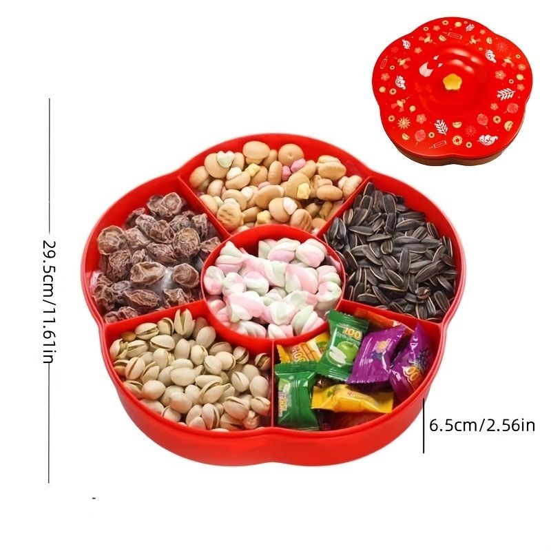 Home > 1pc Candy Storage Box Fruit For Chinese New Year; Nuts Tray With Lid; Snacks Organizer Food Container; Spring Festival Desktop Decor