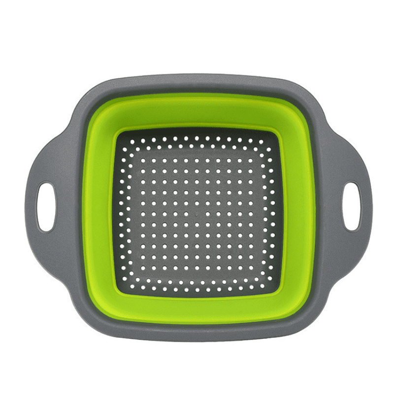 Silicone Folding Drainage Basket; Fruit And Vegetable Cleaning Basket; Folding Filter; Colander Folding Drainer; Kitchen Storage Tool Material: Silicone Color: Green/blue/red Specifications: Large: 29 * 21.9 * 8.6cm/11.4 * 8.6 * 3.3inch Small: 24 * 18.4 * 7.5cm/9.4 * 7.2 * 2.9inch