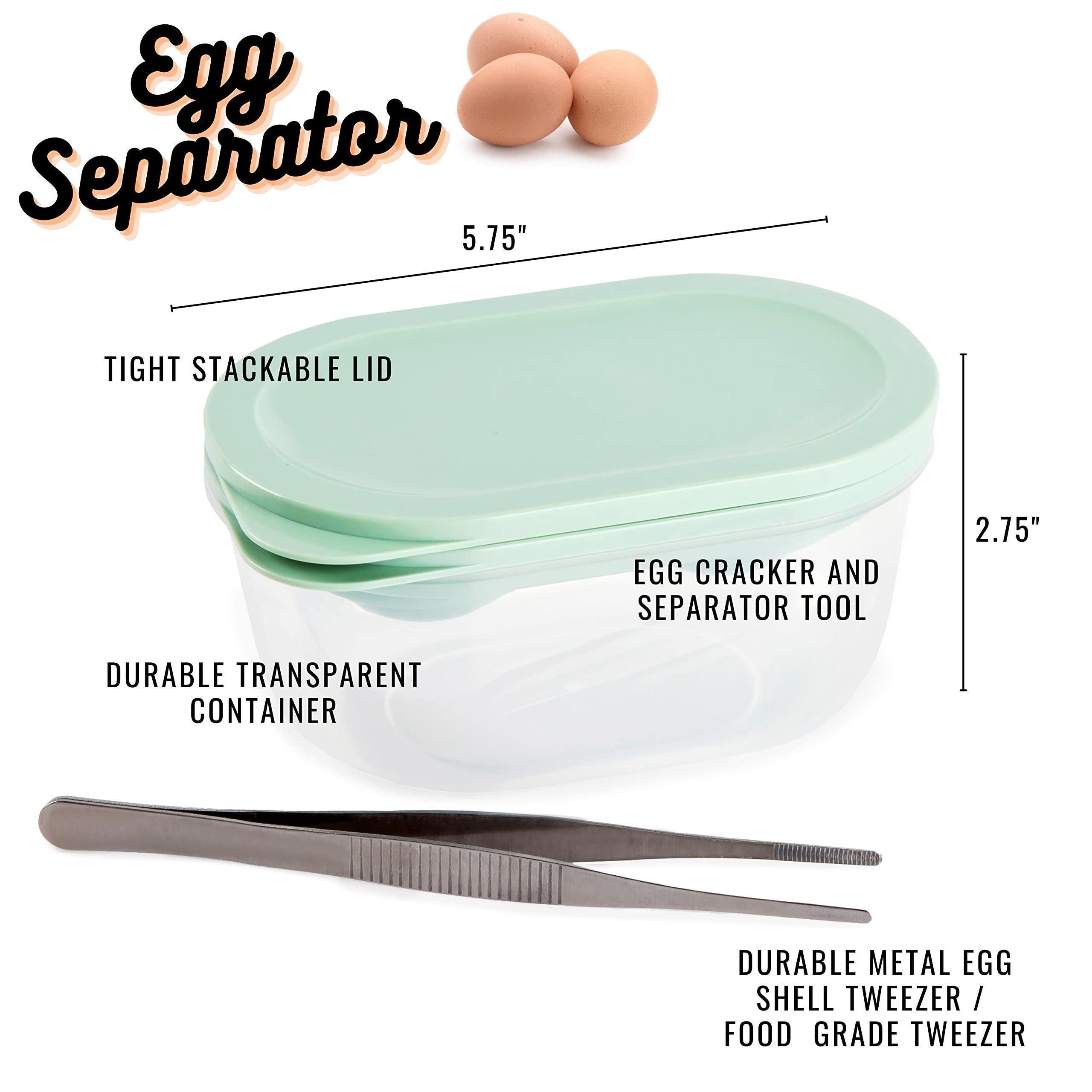 4 In 1 Egg Separator Set Double Egg White Separator With Built In Egg Cracker Food Container Plus Lid and Egg Shell Tweezer Green Color