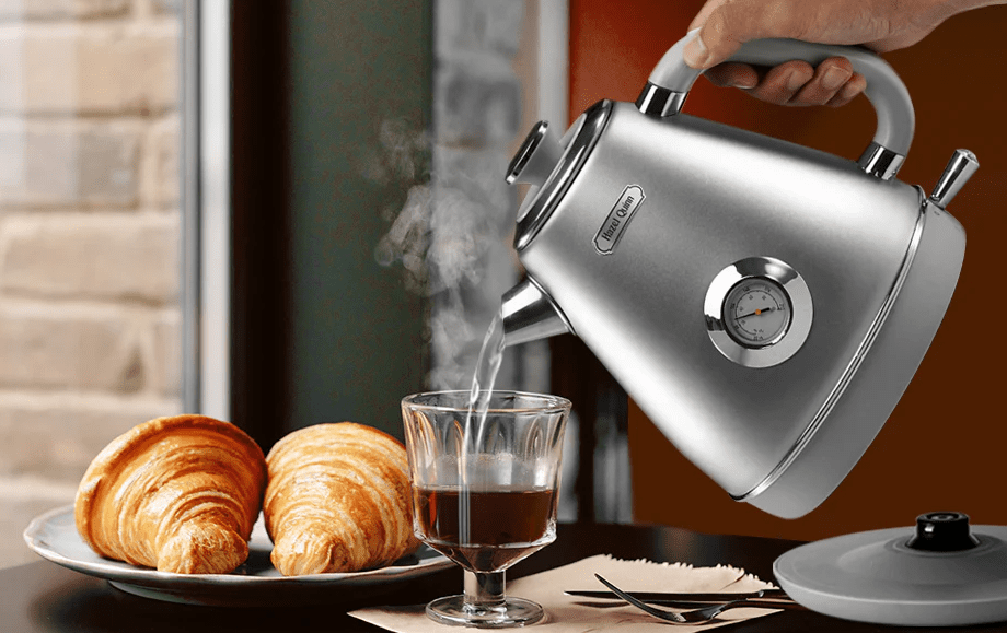 [All Stainless Steel] - -This retro electric kettle's interior, lid and filter are all made of food-grade 304 stainless steel. It has no plastic in contact with water and provides you and your family with healthy drinking without BPA.