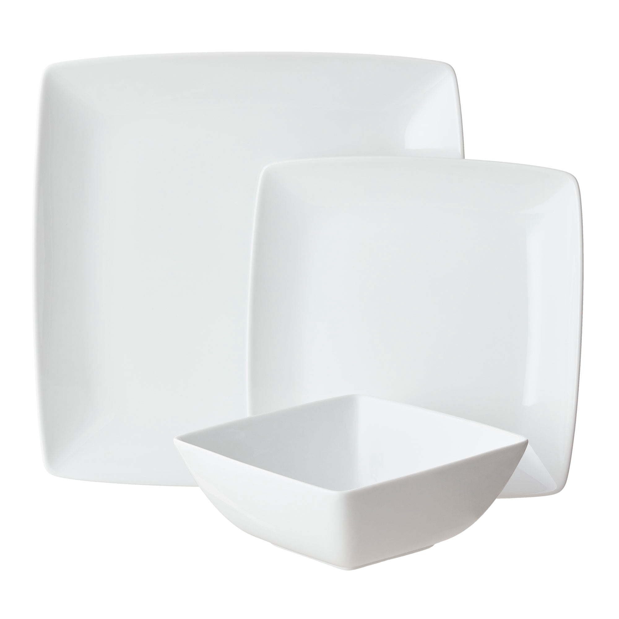 Better Homes & Gardens- Loden White Square Porcelain 12-Piece Dinnerware Set