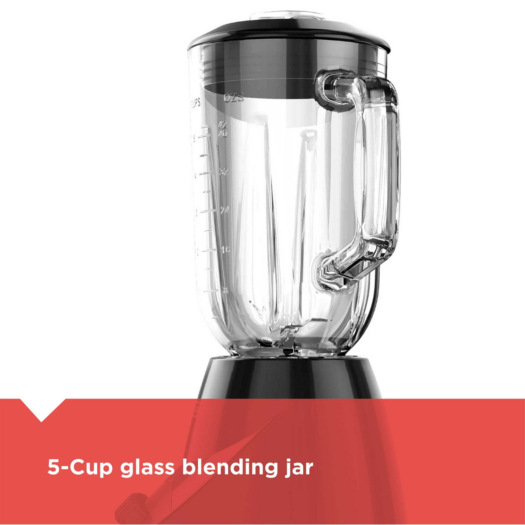 The black+decker™ 10-speed blender is a kitchen classic. With 10 speeds and a pulse control, operation is simple and efficient. The durable glass 5-cup (40-oz.) jar is easy to pour from and holds several servings of your favorite soups, smoothies, frozen mixers, and more! Plus, cleanup is a breeze thanks to the dishwasher-safe removable parts.
