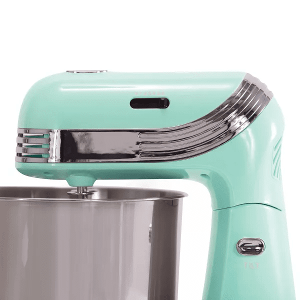 Be prepared for all your everyday baking and cooking projects with the Everyday Stand Mixer. Six preset speeds range from gentle mixing to high-speed whipping, and Dough Hooks are included for mess-free kneading. A tilting motor head makes adding ingredients or removing the stainless steel, 3 quart Mixing Bowl simple. Easy to clean and with a stylish retro design, this is the ideal mixer for everyday cooking.