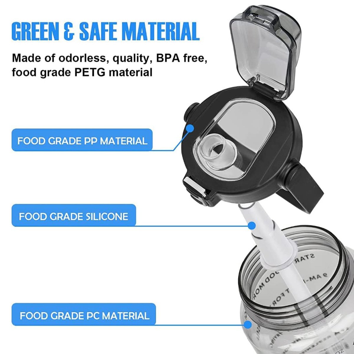 Motivational Time Marker - With motivational quotes and time markers on it, the water bottle is perfect for helping you stay motivated to drink enough water throughout the day. Featured with a transparent appearance helps you check the actual amount of water intake easily and clearly. It is fun and easy for any fitness goal including weight loss, muscle gain, appetite control and overall health.This water bottle is 100% BPA & TOXIN FREE,odour free and healthy for your daily water drinking.Safety: The lid of the cup adopts a silicone sealing ring, which is safe and leak-proof sealing, which can resist high temperature and prevent aging. The cup comes with a safety lock to avoid accidentally opening the lid.It is ideal gift for your friends, family, coworkers to motivate them stay hydrated and healthy.
