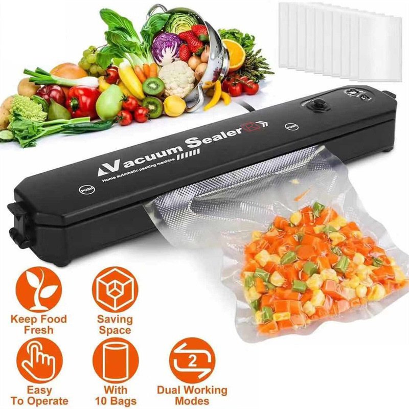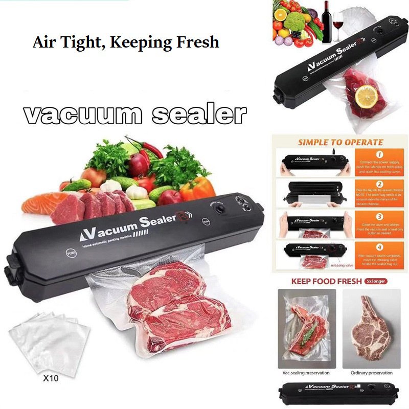 Food vacuum sealer removes air from specially designed bags. Multi- layer material heat seals to keep air out and prevent freezer burn, reduces spoilage and food waste. And cooking and meal preparation will become easier, more economical and faster.