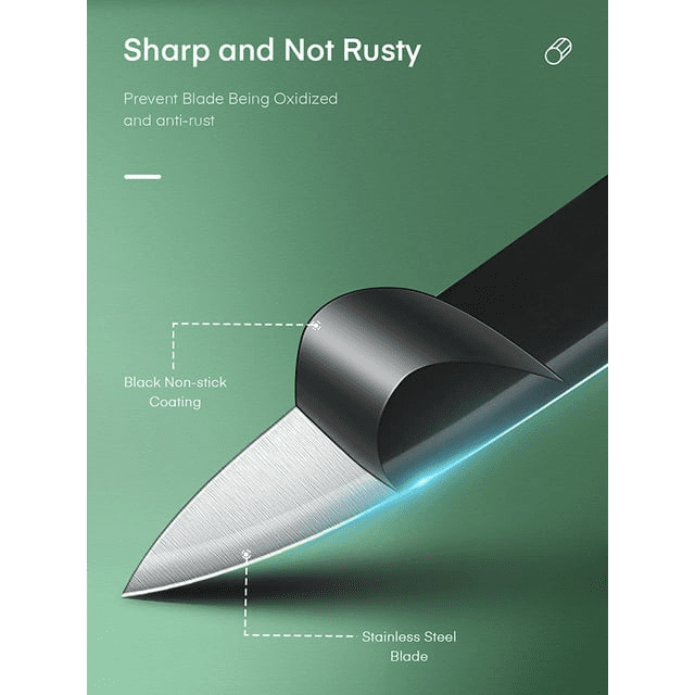 Knife set with anti rust and non stick coating: each knife is coated with bo oxidation coating, which can provide high durability, durability and excellent resistance to chipping and corrosion. There will be no rust, stains or pitting.