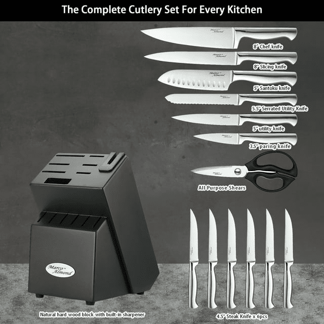Marco Almond KYA28 14-Piece Stainless Steel Cutlery Kitchen Knife Set with Block,Built-in Sharpener Marco Almond KYA28 14-Piece Stainless Steel Cutlery Kitchen Knife Set with Block,Built-in Sharpener Marco Almond KYA28 14-Piece Stainless Steel Cutlery Kitchen Knife Set with Block,Built-in Sharpener