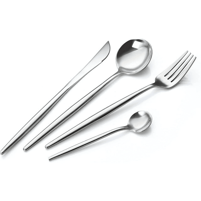 Luxury serving set for 4: this 16piece flatware set by bruntmor contains 4 dinner forks, 4 teaspoons, 4 knives, 4 tablespoons enough to serve dinner for four.