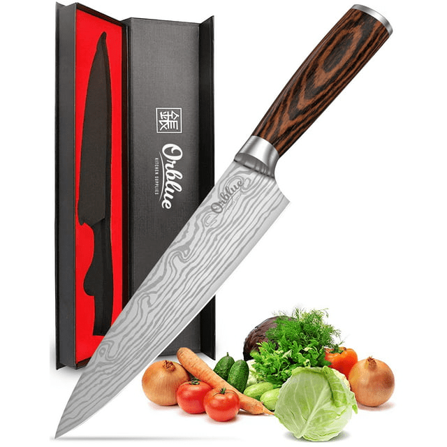Orblue Chef Knife, 8-Inch High Carbon German Stainless Steel Chef's and Kitchen Knife