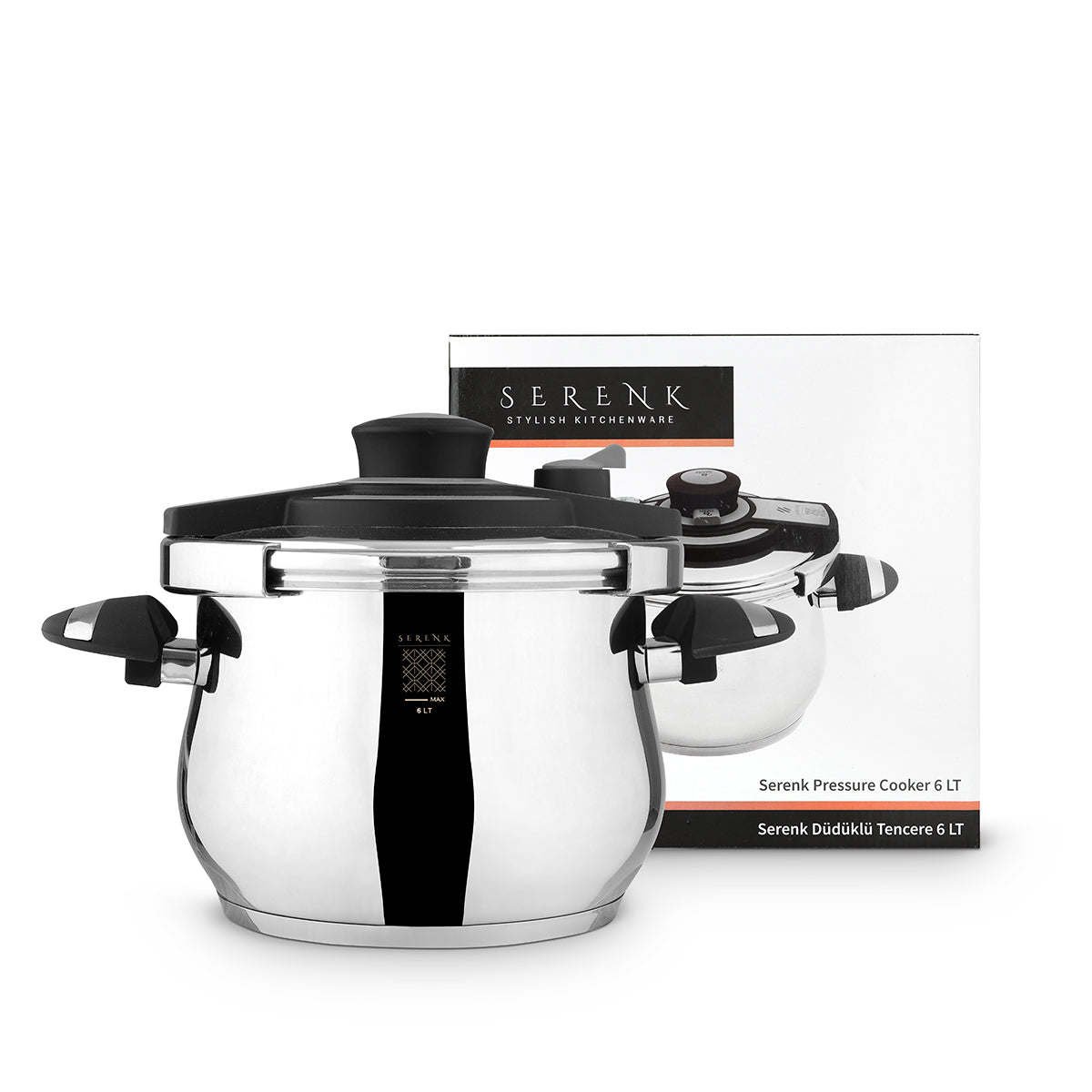 STAINLESS STEEL PRESSURE COOKER: Serenk pressure cooker is constructed of 18/10stainless steel which exceedingly resistant to scratches, staining and will maintain its performance for a lifetime.Besides being durable, stainless steel is healthy,does not contain any toxic material, and is suitable for contact with food.