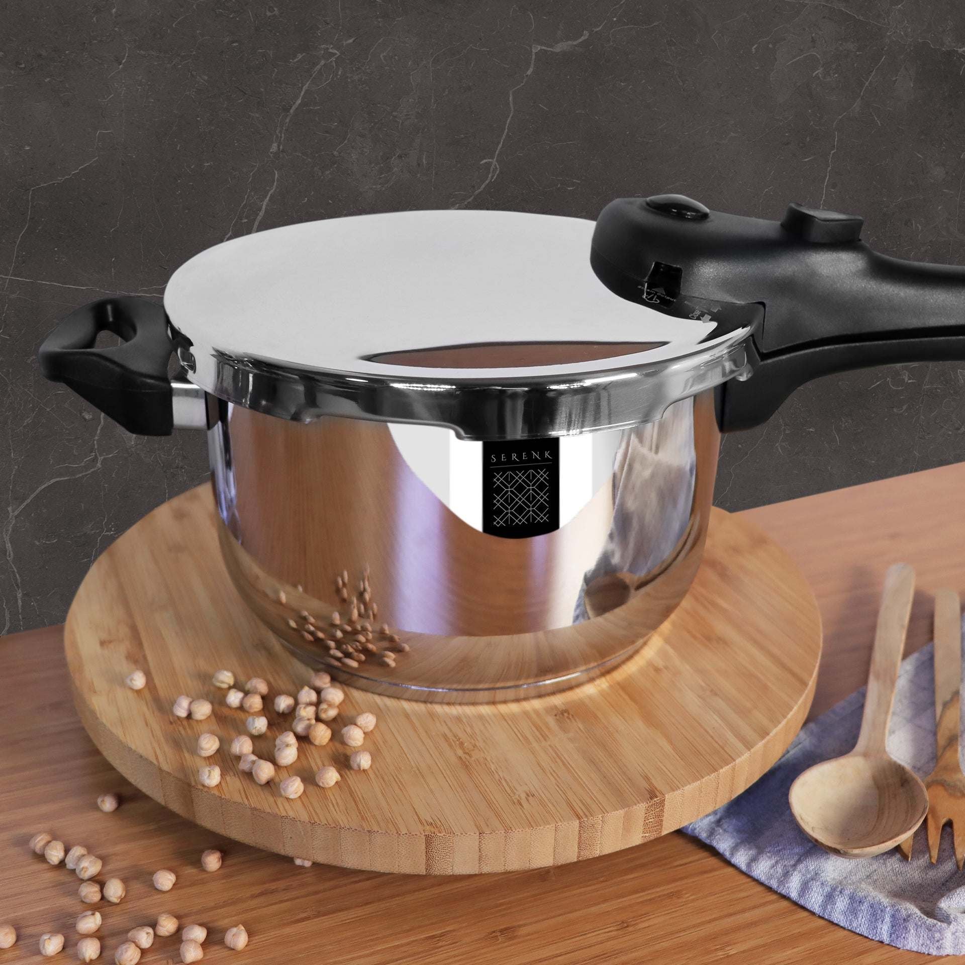 STAINLESS STEEL PRESSURE COOKER: Serenk pressure cooker is constructed of 18/10stainless steel which exceedingly resistant to scratches, staining and will maintain its performance for a lifetime. Besides being durable, stainless steel is healthy,does not contain any toxic material, and is suitable for contact with food._x000D__x000D_